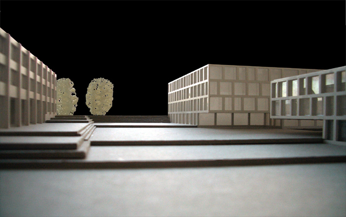 Les deux bâtiments modulaires en acier des années ’70 implantées dans un grand parc ont été complétés par l’ajout d’un troisième volume qui regroupe l’ensemble des constructions autour d’un vaste préau central requalifié. Les bâtiments et leur prolongements extérieurs « se traversent » naturellement de part en part, mettant en relation les diverses parties du site : des terrains de sport et une piscine au sud, des quartiers de logements tout autour. Le nouveau bâtiment s’implante en bordure de la rue du Léman, sur une ligne de rupture de pente. La liaison intérieure entre la rue du Léman et le préau de l’école en contrebas au travers d’un atrium de lumière permet un accès différencié à chaque niveau. Sa conception typologique réinterprète celle de l’école existante, des couloirs et des salles de classe disposées en couronne autour d’un espace central borgne. Il se distingue de son modèle par l’organisation en hélice de ses couloirs et de ses salles de classe autour d’un vaste atrium central baigné de lumière naturelle, permettant de belles vues sur l’extérieur depuis le cœur du bâtiment. La superposition dans un volume unitaire d’un programme complexe et diversifié (des salles de sport, une salle polyvalente, un réfectoire scolaire ou des salles de classe) a été rendue possible par le recours à une structure porteuse en béton armé qui s’exprime en façade par une grille de poutres Vierendeel et à l’intérieur par des murs-voiles qui ont permis le franchissement de grandes portées.