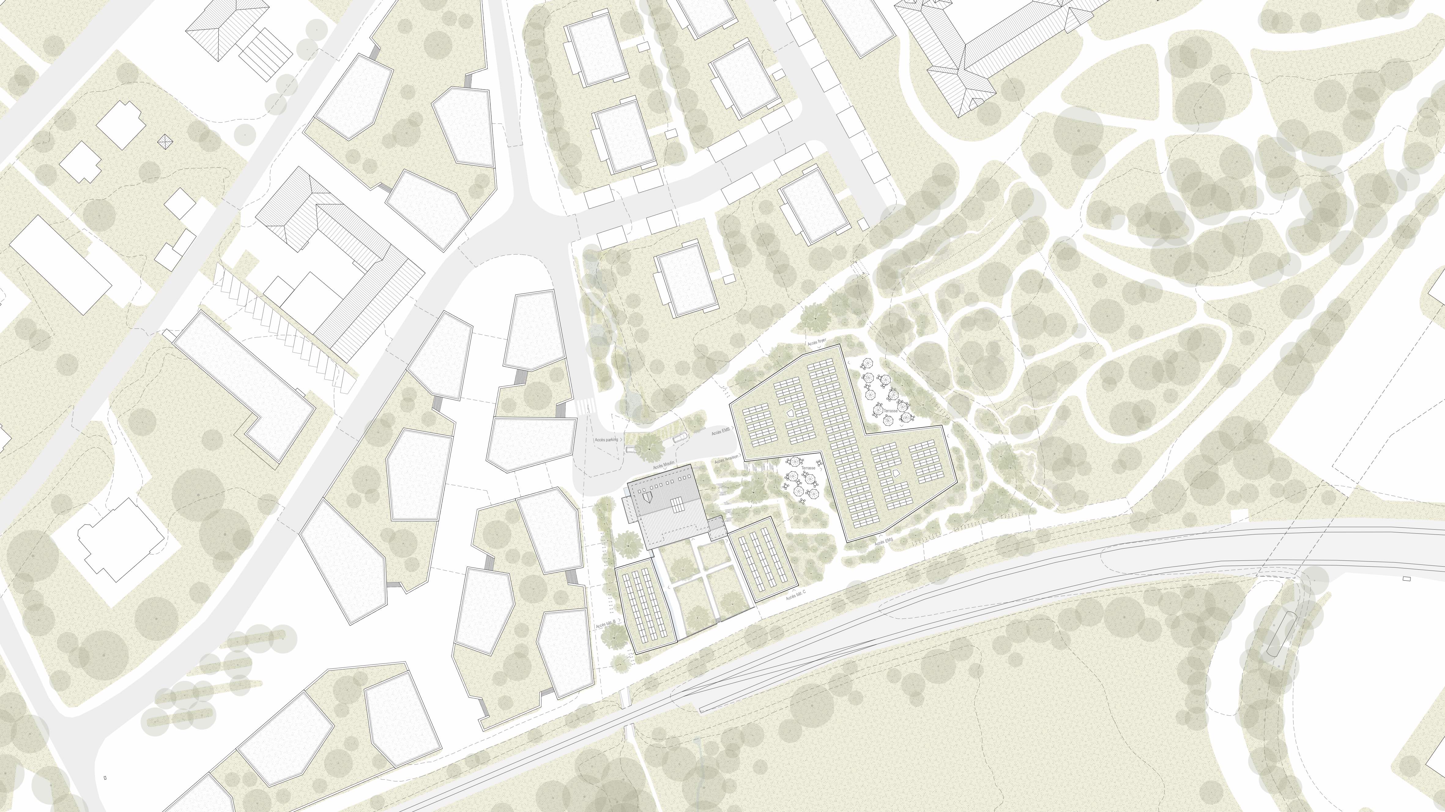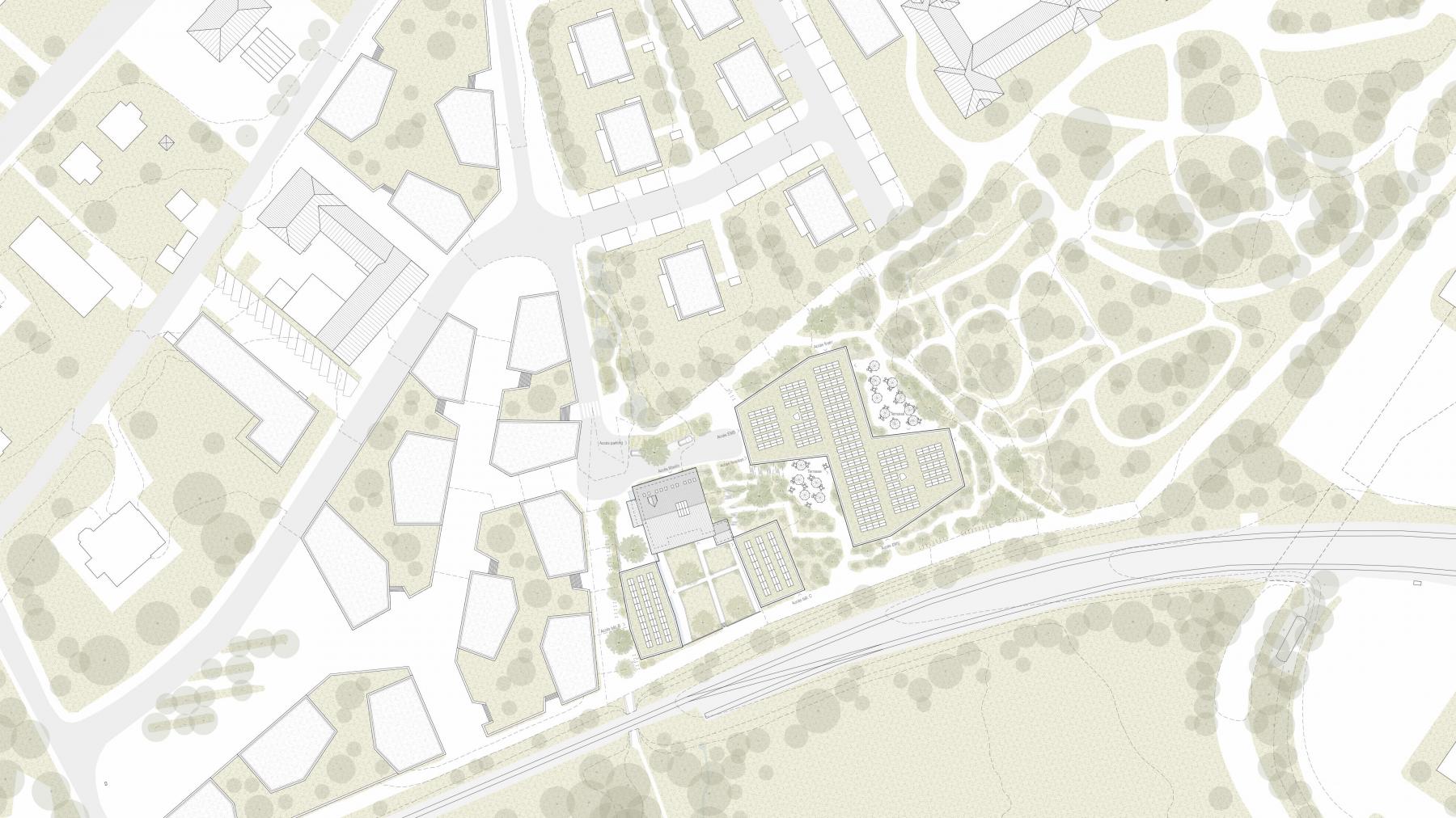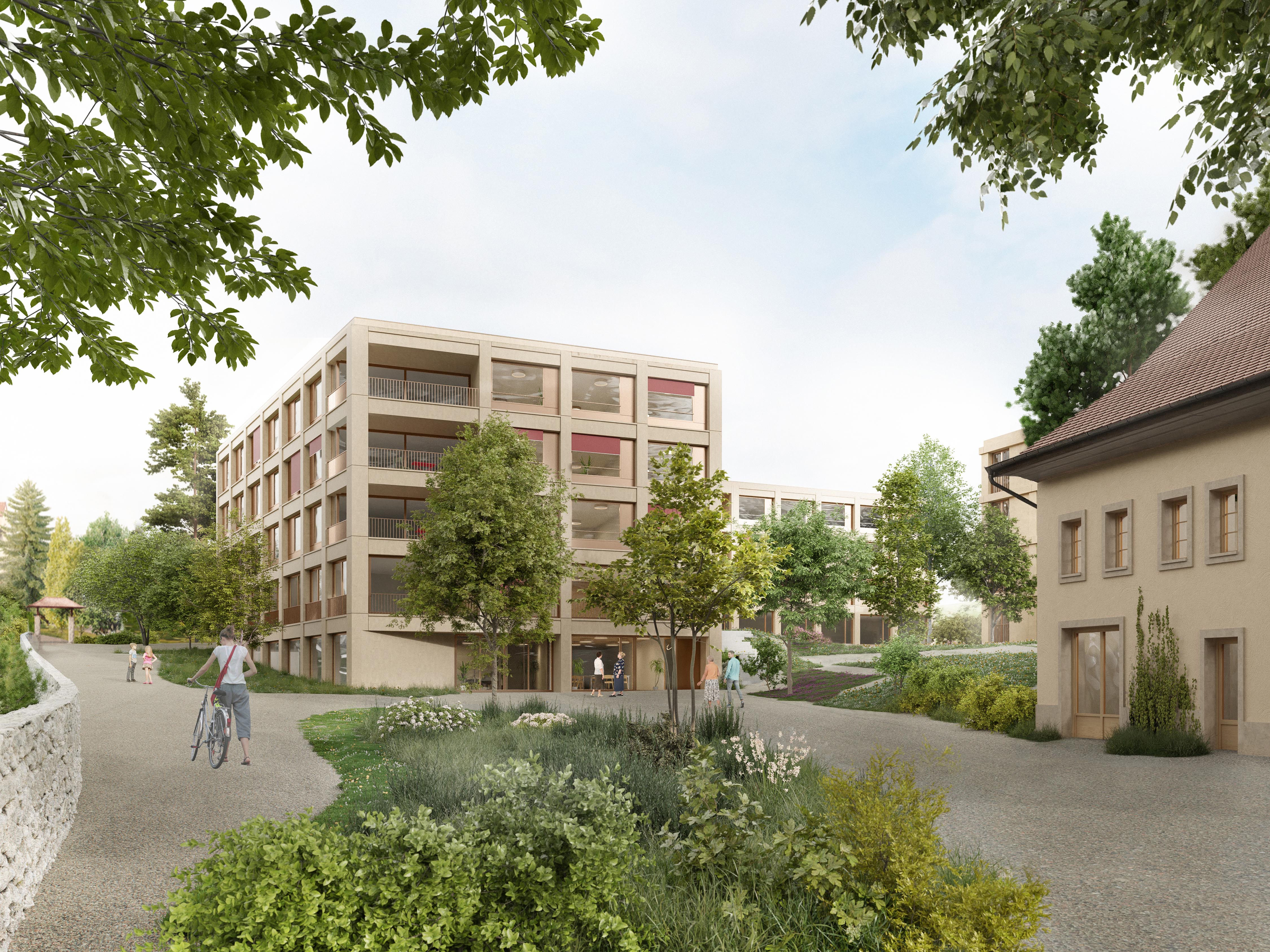 Situé à l’articulation d’un quartier en développement et du parc du site scolaire du Sacré Cœur, le projet fait office de trait d’union entre ces différentes parties, ce qui explique la forme en Z particulière de sa volumétrie, qui dégage de part et d’autre des lieux de détente ouverts sur le contexte immédiat. La qualité paysagère du lieu est un atout à préserver, de manière à respecter l’essence du site: géographique, topographique, écologique, historique, patrimoniale, architecturale et sociale.