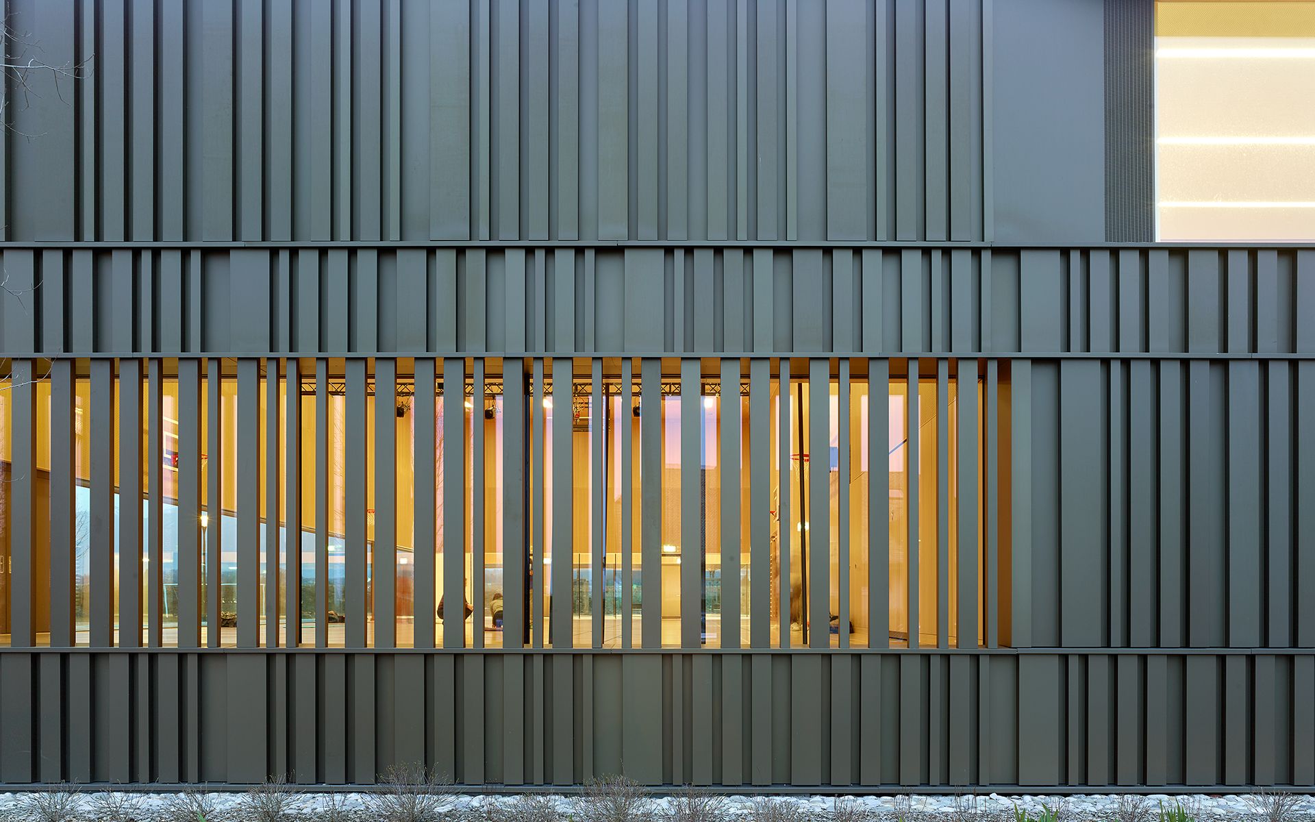 Les couloirs qui distribuent les différents locaux du programme s’ouvrent largement en façade par des espaces de dégagement ou débouchent sur l’espace majeur du foyer bénéficiant d’une double hauteur, mettant ainsi en relation les différents accès du site.