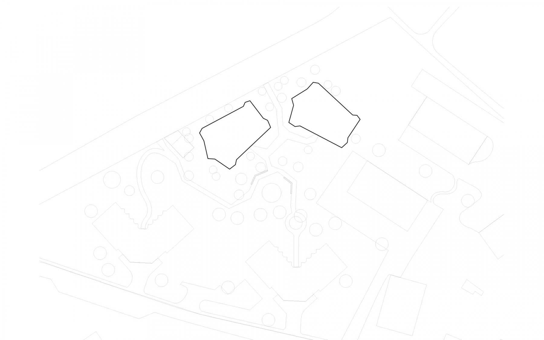 Les deux immeubles sont compacts et de formes polygonales, permettant de proposer une grande variété d’appartements en angle, tous avec une double orientation. Les différents types d’appartements se répartissent autour d’une cage d’escalier commune éclairée en son centre par un puit de lumière naturelle. Cet espace de distribution fonctionne comme lieu de rencontre et d’échange entre habitants. On y accède par les entrées des immeubles qui se situent à l’intérieur de la cour-jardin et qui sont disposées de manière à assurer la fluidité des aménagements extérieurs et de leurs équipements. L’organisation des appartements est simple et rationnelle. Du hall d’entrée qui distribue les chambres et les locaux sanitaires, on perçoit d’un seul coup d’œil l’appartement dans toute sa spatialité et sa profondeur. Le coin repas et le séjour de dimensions généreuses se prolongent à l’extérieur dans une vaste loggia, véritable pièce à vivre ouverte sur des aménagements paysagers de qualité.