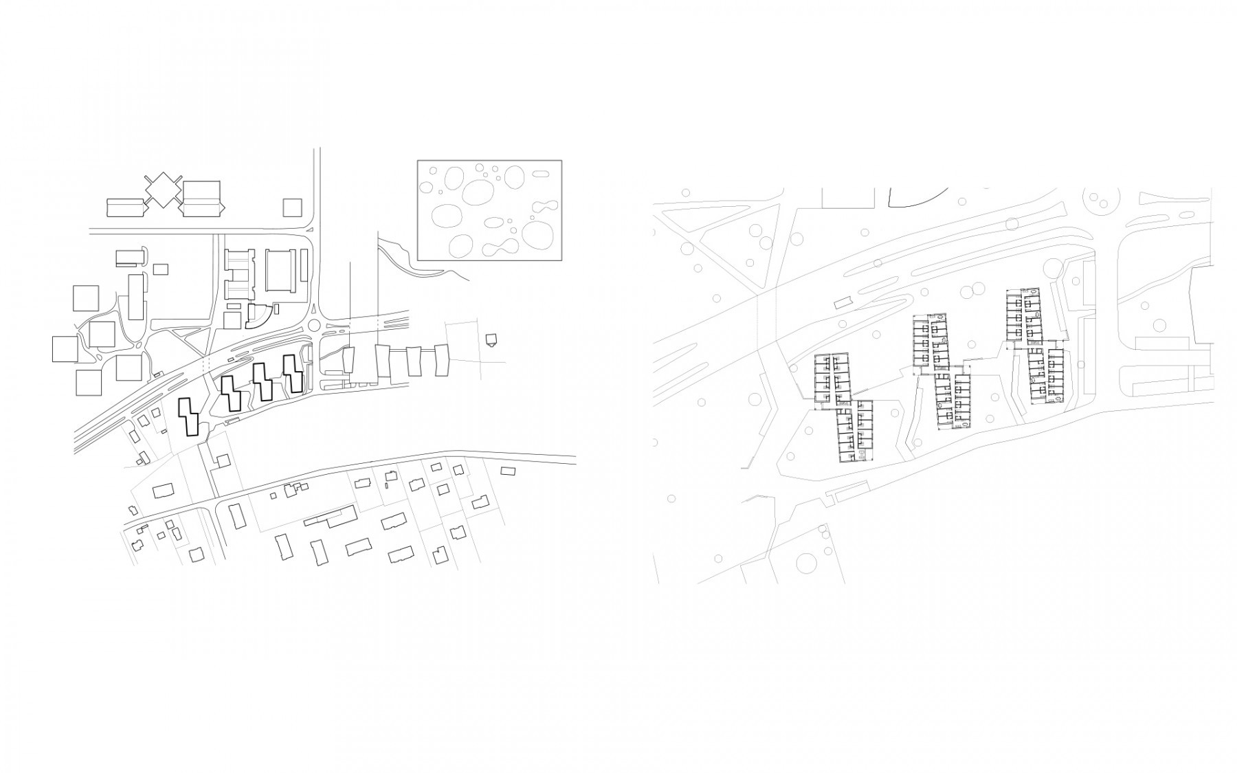 La figure en forme de baïonnette reprend et souligne les deux géométries présentes sur le site, d’un côté celle des bâtiments EPFL, de l’autre l’orientation naturelle de la pente et des ses courbes de niveaux. Le choix de limiter la hauteur des bâtiments à 4 niveaux (rez +3) donne une échelle modeste aux bâtiments, en leur permettant une meilleure intégration dans le contexte environnant.