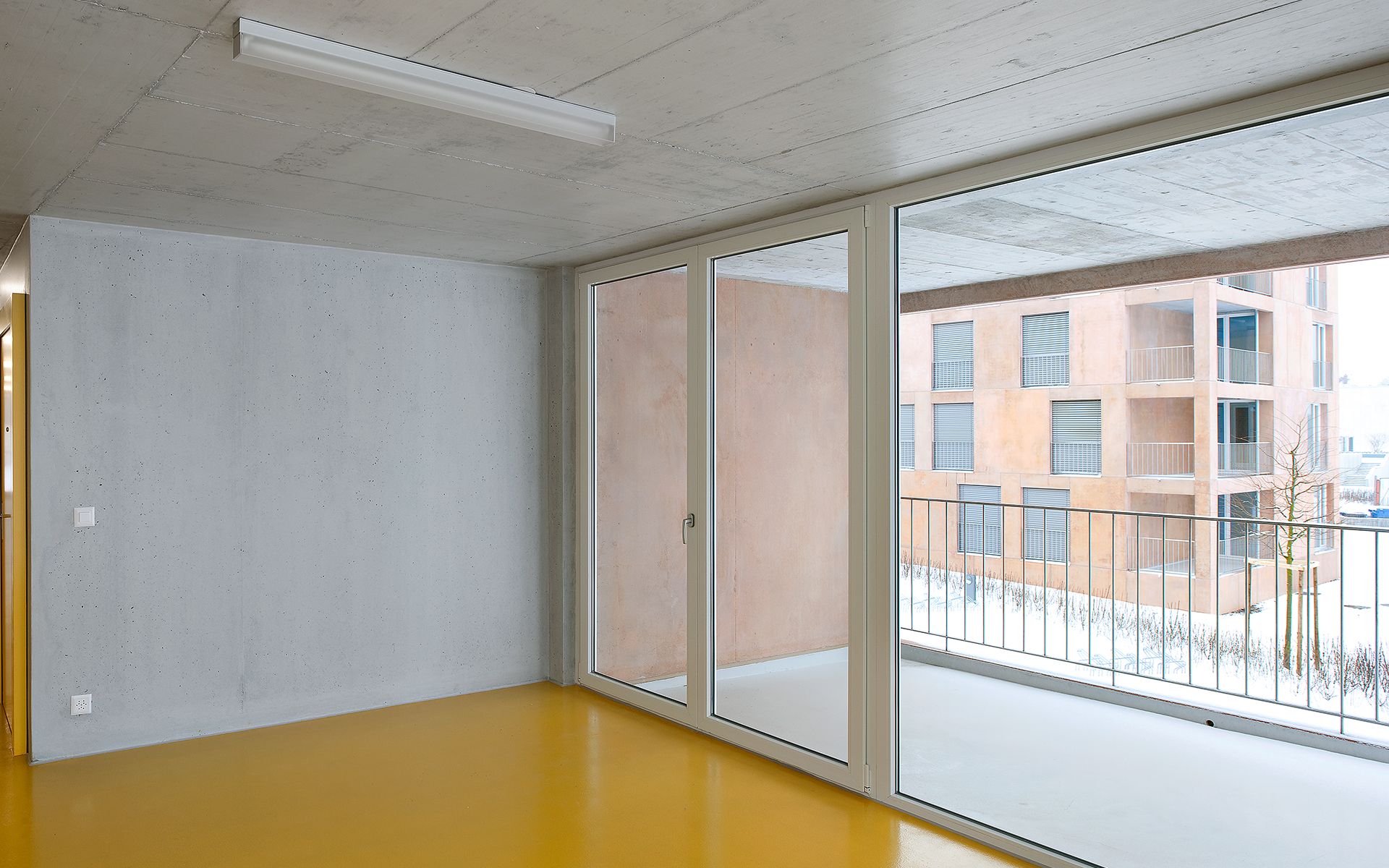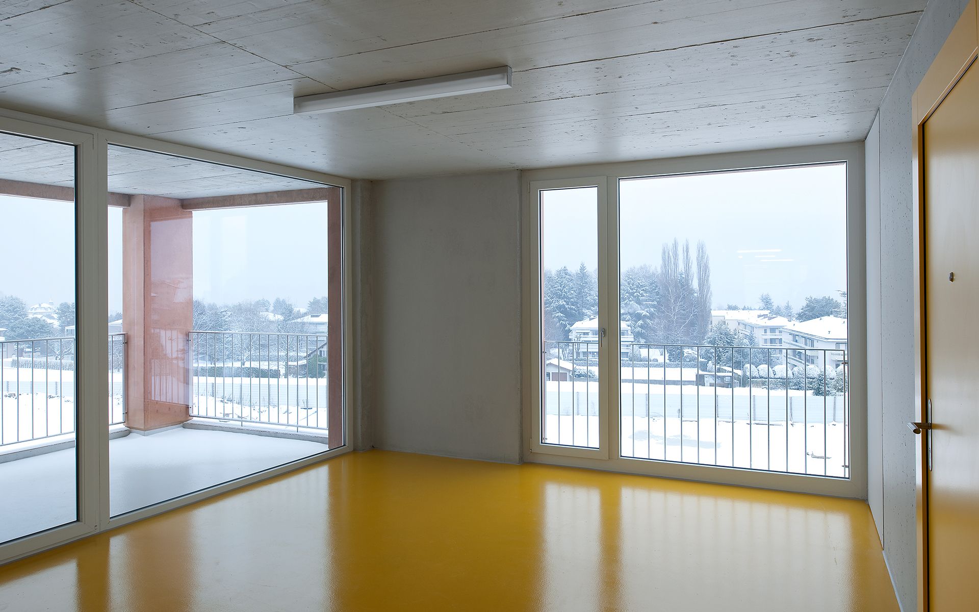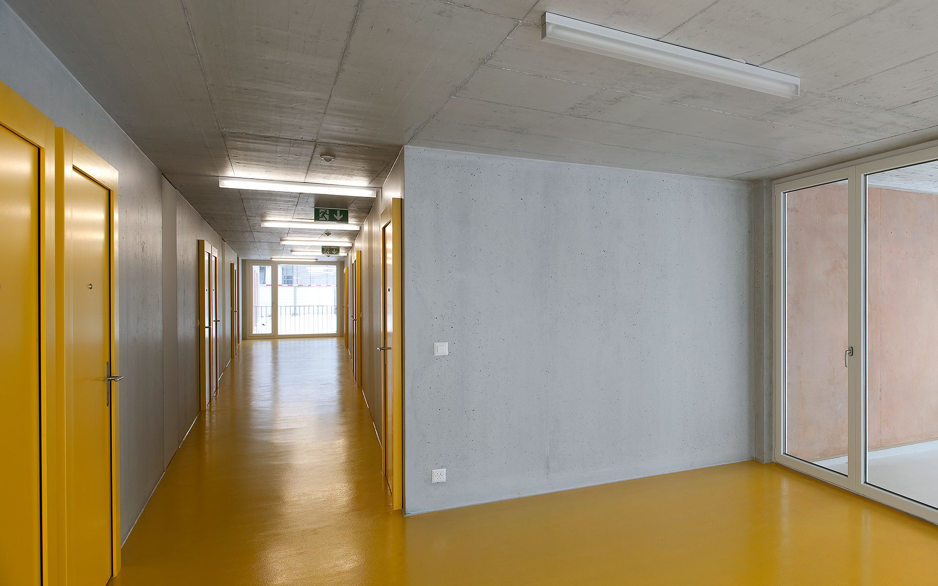 La géométrie des volumes permet d’éclairer naturellement les zones centrales de circulation, tout en ménageant des vues sur l’extérieur. L’ensemble des bâtiments est chauffé à l’aide d’une centrale à pelets bois. Les bâtiments répondent aux valeurs des standards Minergie.