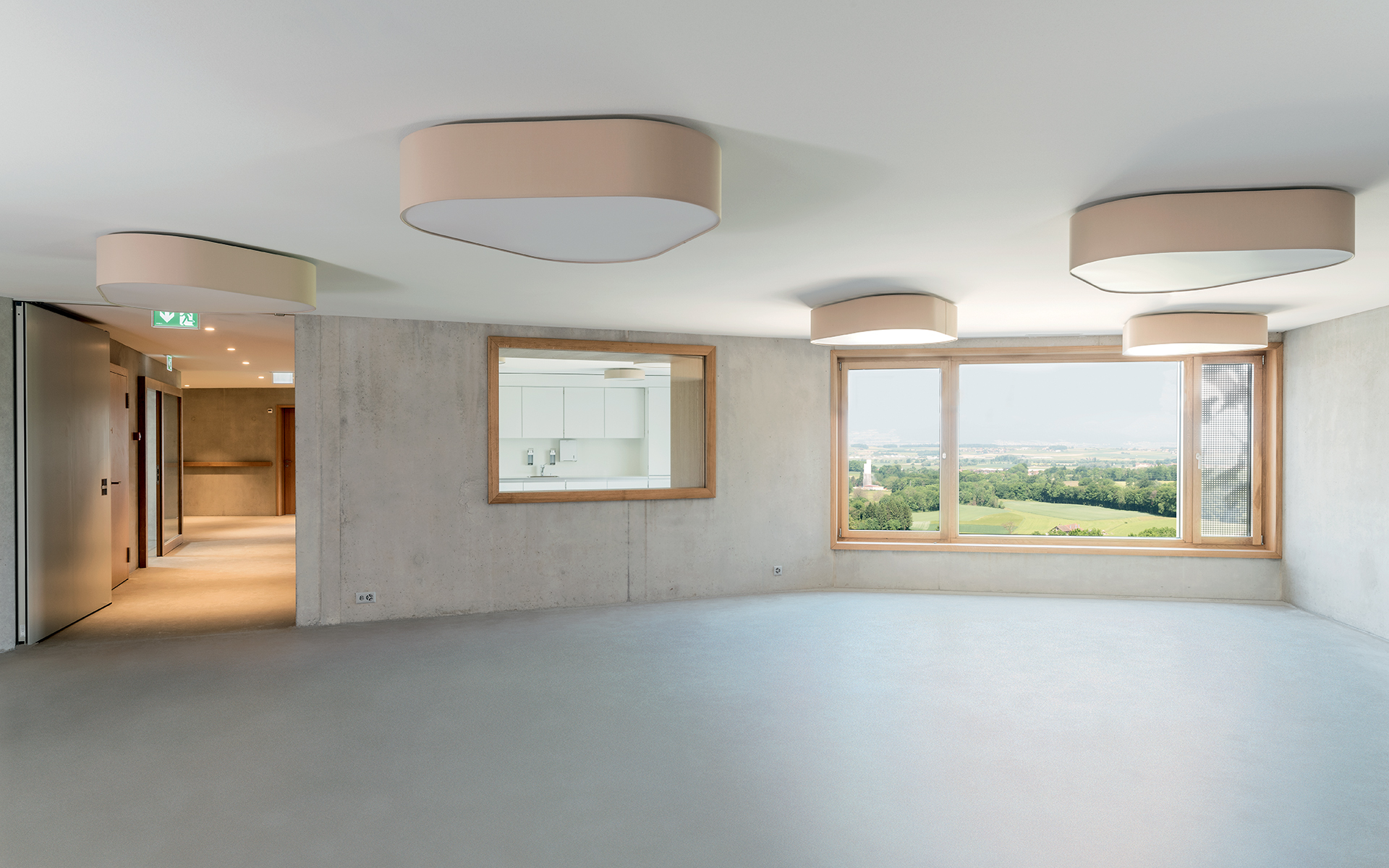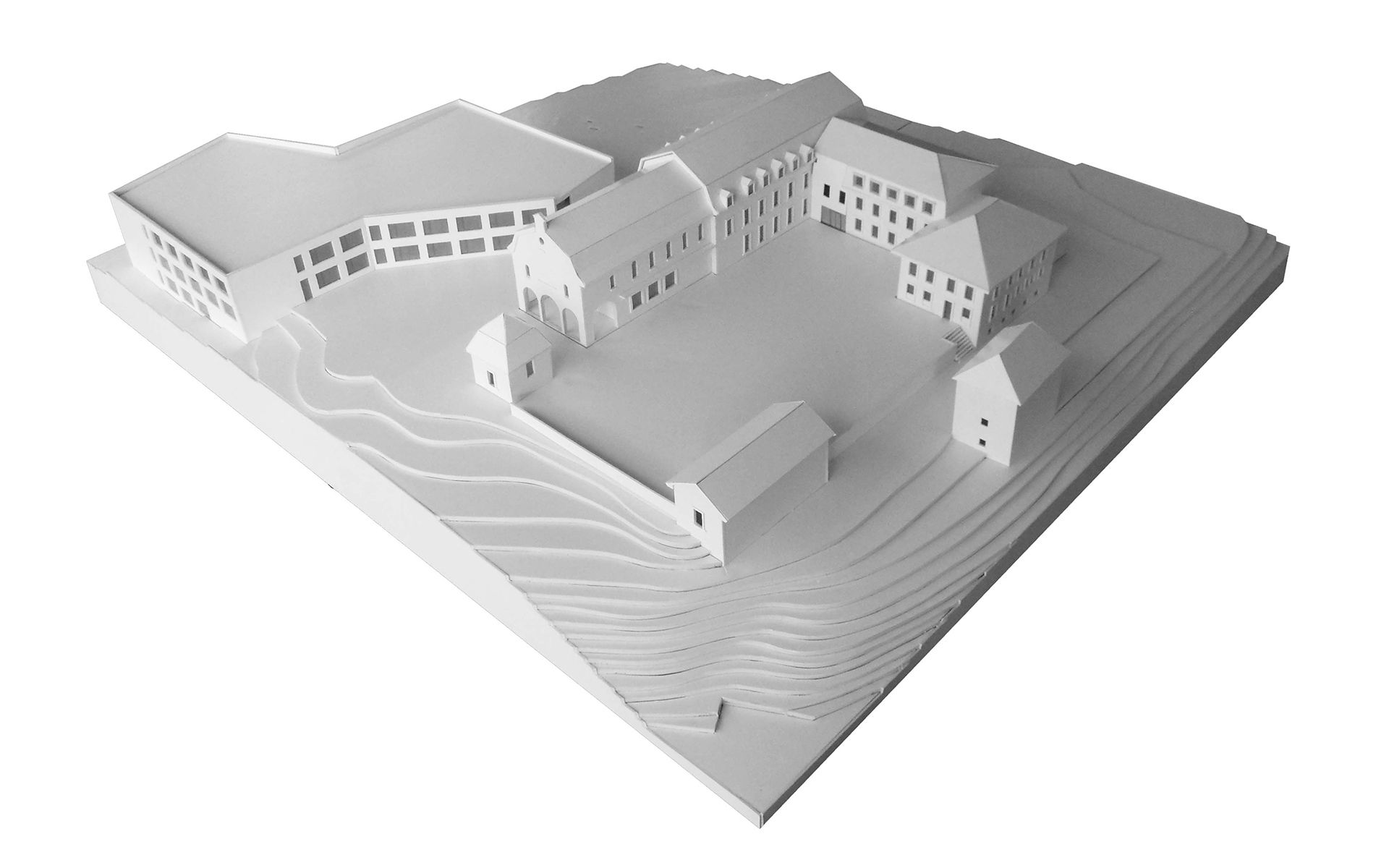 L’EMS des Fauvettes se situe sur une colline dominant la plaine de la Broye fribourgeoise et le Jura à l’ouest, les préalpes fribourgeoises et la plaine de la Sarine à l’est. Les bâtiments existants se développent en forme d’équerre autour d’un ancien jardin à la française ouvert sur le grand paysage au sud. Une grande cour permet d’accéder à l’entrée principale depuis la route conduisant au village de Montagny-la-Ville. Les lignes brisées du nouveau bâtiment se connectent à l’espace de liaison des bâtiments existants, un ancien orphelinat et une chapelle. Les bâtiments existants abritent toutes les fonctions communes. Les 60 chambres du programme sont organisées en 3 unités de vie regroupées autour d’un grand espace commun central.